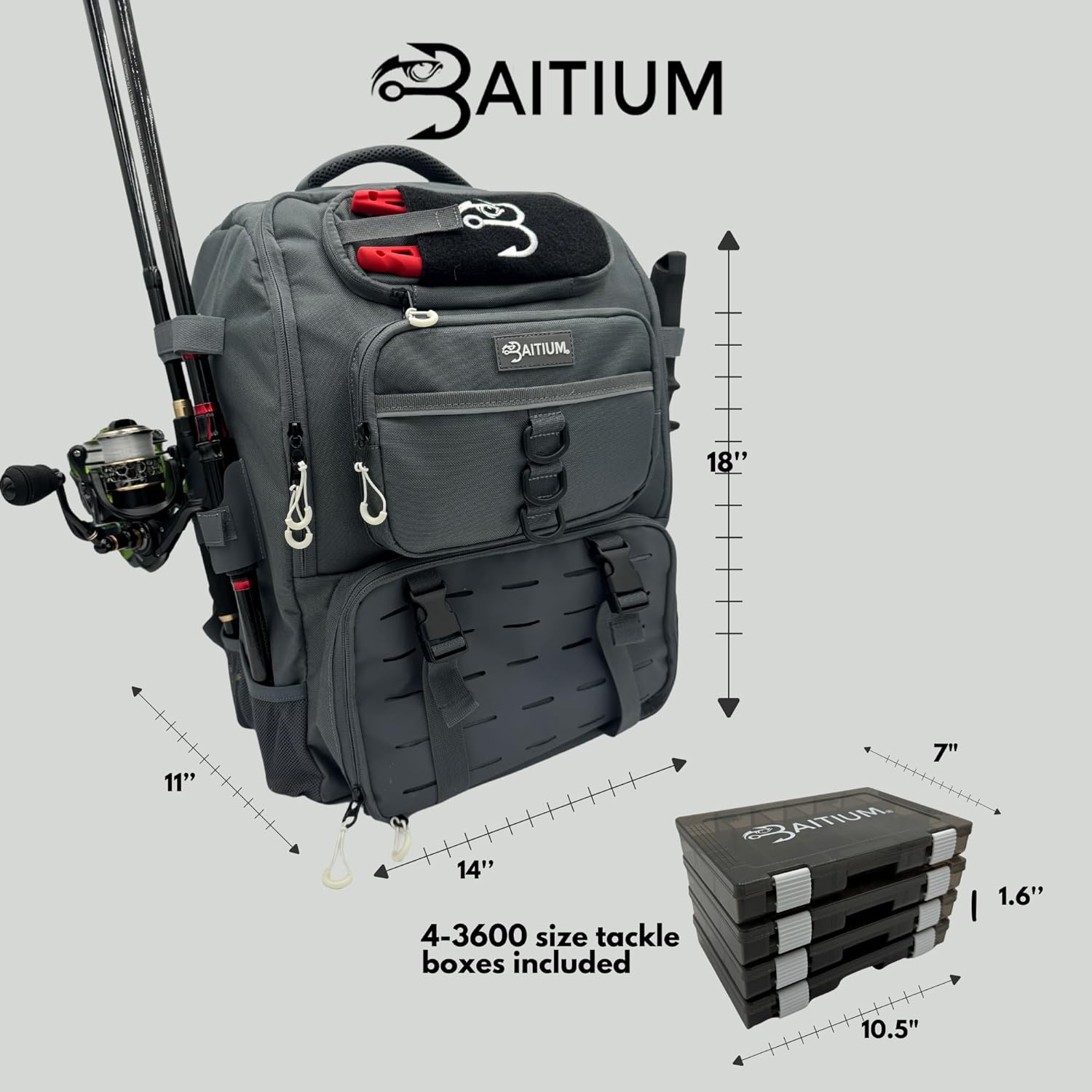 Baitium All-In-One Fishing Tackle Backpack - 4 Trays Included