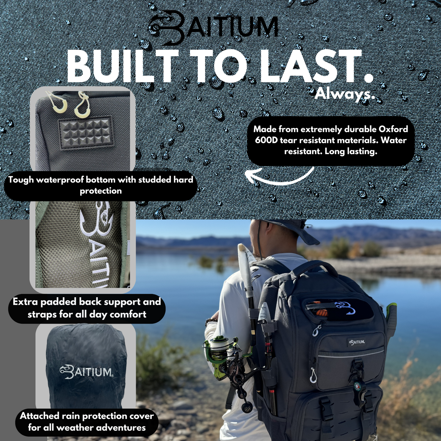 - Unmatched Durability- Built to withstand the rigors of extensive use in various environments, the Baitium 40L Fishing Tackle Backpack is a testament to durability and reliability. Crafted from top-tier 600D Oxford materials renowned for their robustness, this backpack ensures long-term performance, promising to be your steadfast companion through countless fishing expeditions.